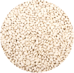 Alubia blanca alargada, ligeramente aplastada. Destacan por su tamaño grande y su textura suave al paladar, quedando su piel muy fina en los guisos.